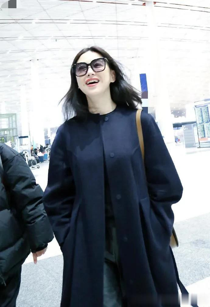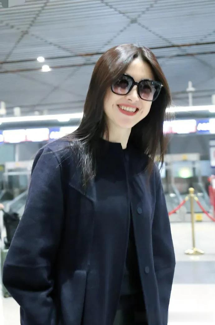 朱珠的气质真是出挑! 穿黑色圆领大衣+牛仔裤, 时髦又高级!