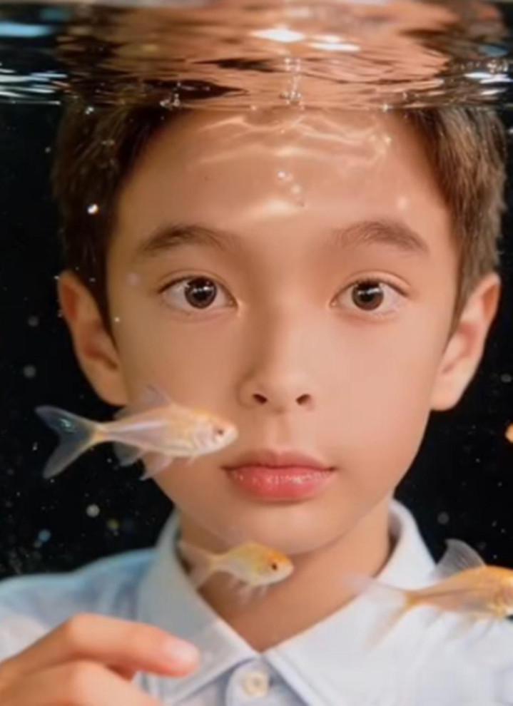 皮肤白净,大眼睛、高鼻梁,还有一头软软的黄色头发,五官立体又可爱,小时候是奶萌的小正太,现在越长越帅气,而且跟姐姐一样,长相偏中国化。
