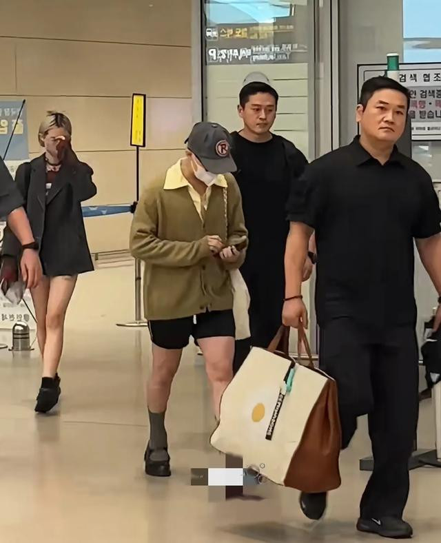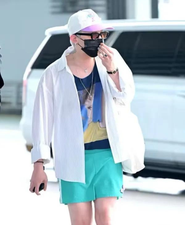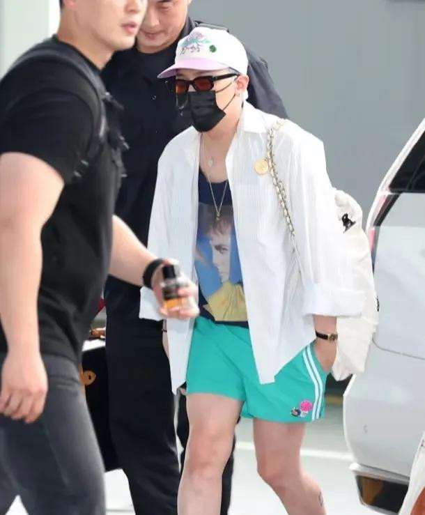 上一次的机场路透,权志龙也穿着短裤现身,大概和今天穿的黑色是同款不同色,背的包包也还是白色的香奈儿。