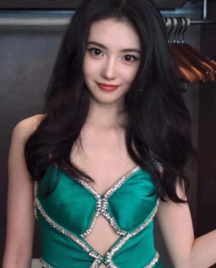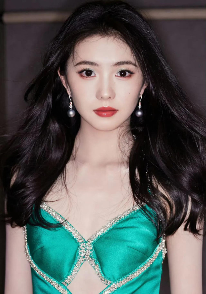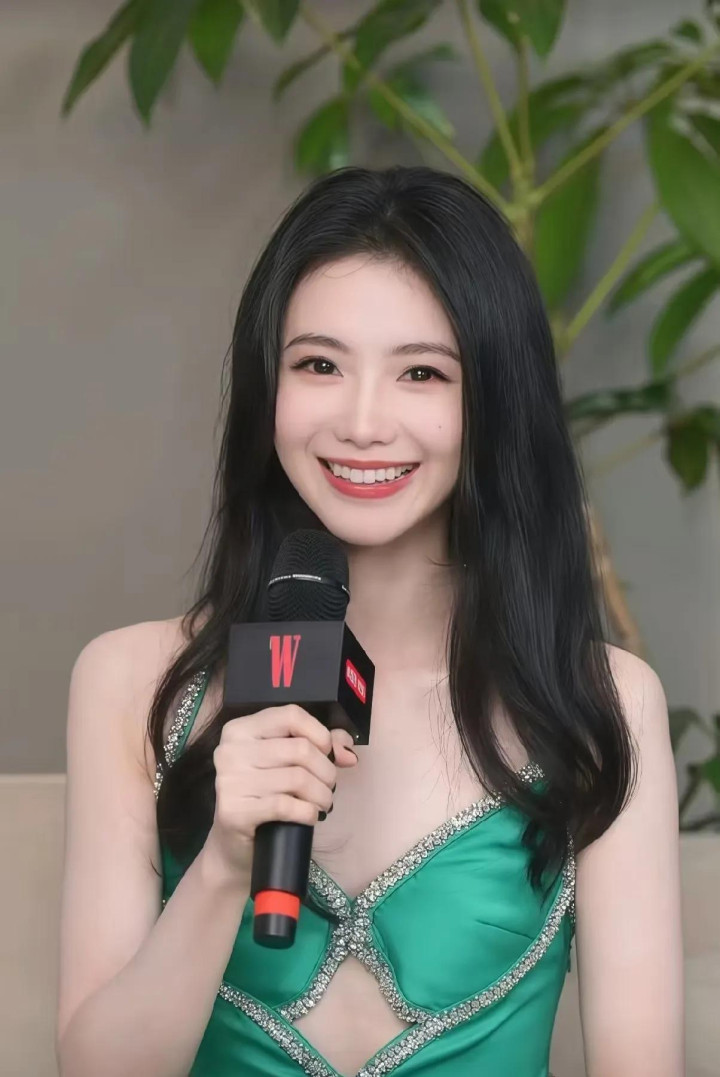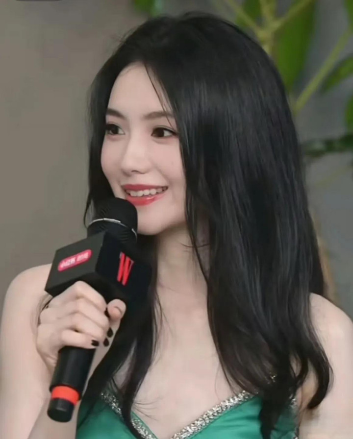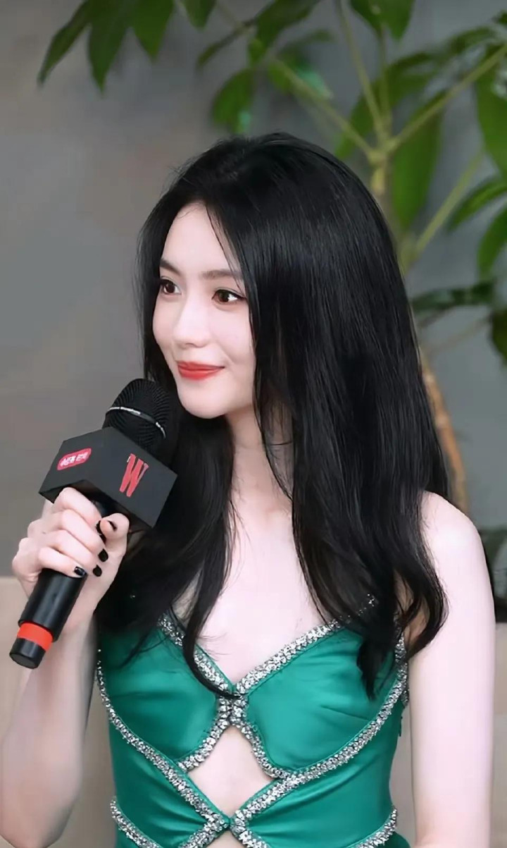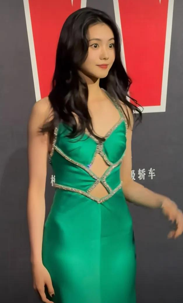 W盛典上刘浩存一袭绿钻露腰长裙搭配大波浪, 优雅气质与美貌齐飞