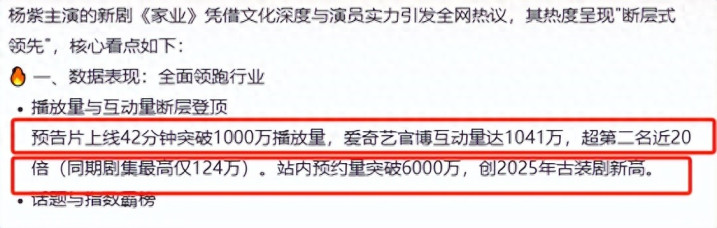 《家业》的数据,不是那种凑数的点击,是实打实的有效播放,再看第二名的数据,这哪是领先啊,简直是吊打。