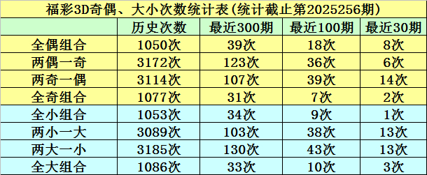 在前10期开奖中,两小一大组合出现5次,两大一小组合出现4次,全大组合出现1次,全小组合出现0次,本期预计开出全小组合。