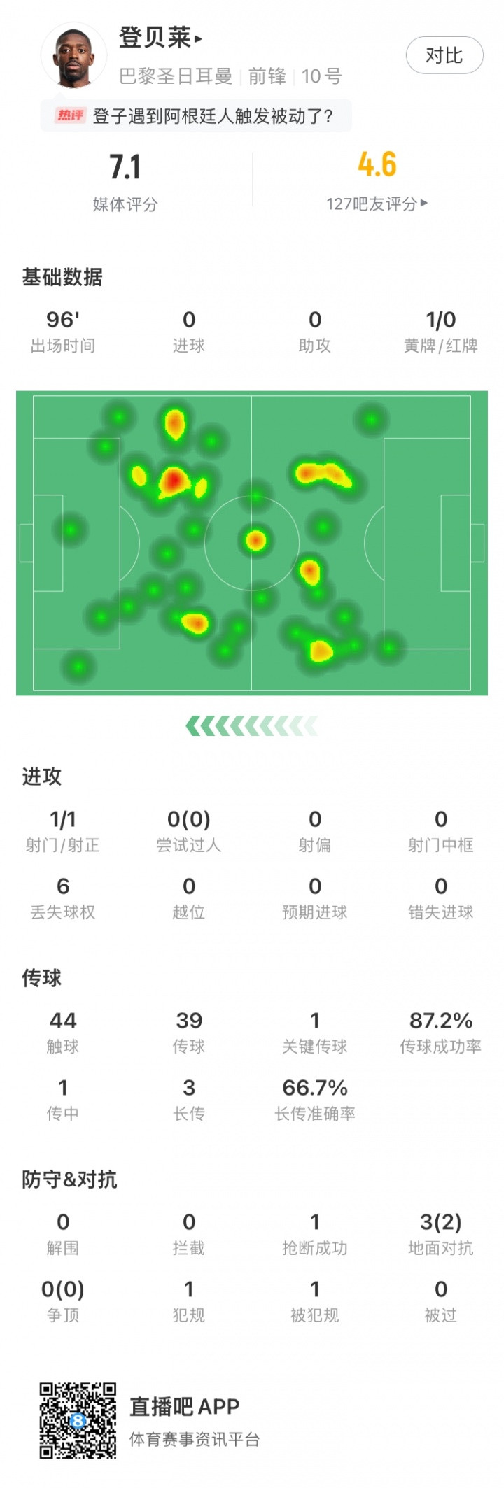 直播吧07月14日讯巴黎0-3不敌切尔西,痛失世俱杯冠军。此前表现出色的登贝莱本场哑火,在场上几乎“消失”,仅有1次威胁射门。