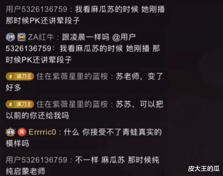而此时直播间的网友们也在调侃麻瓜苏颜值的变化,并表示麻瓜苏换了个头现在根本认不出来了,麻瓜苏不解的表示自己真的有变吗?也就是换了一个鼻子而已。最后麻瓜苏还撩到了股票,但是这个话题却是让她一点都高兴不起来。